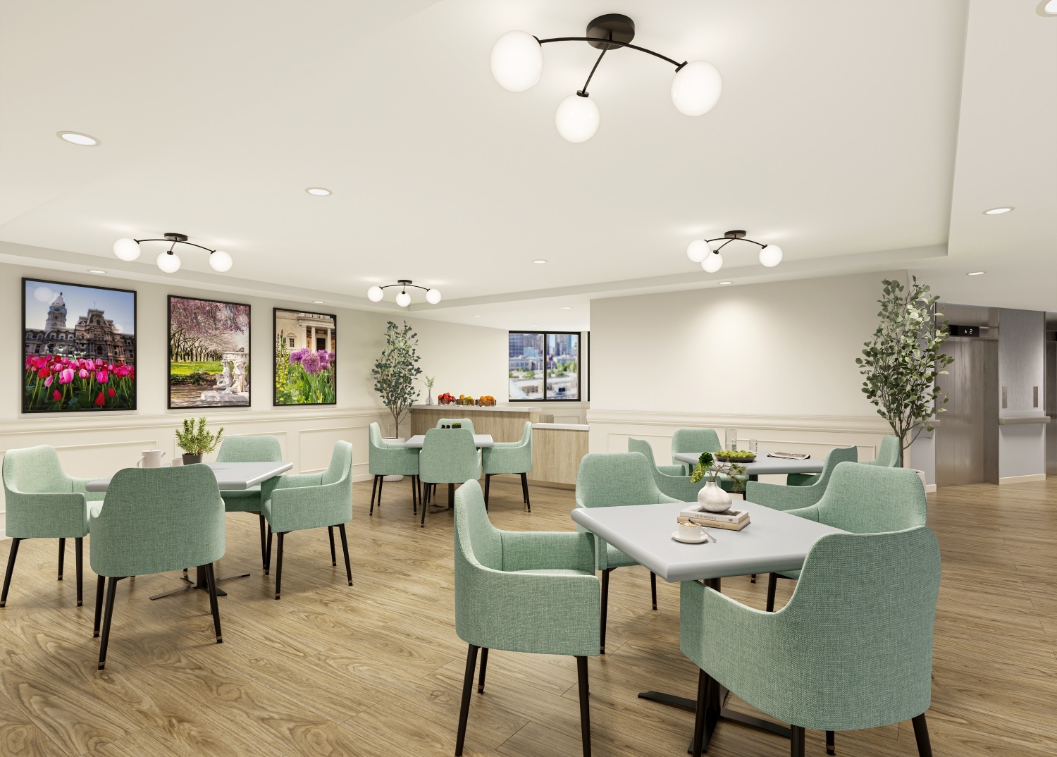 - Resident room numbers with personalized photo displays to help residents recognize and find their apartments
